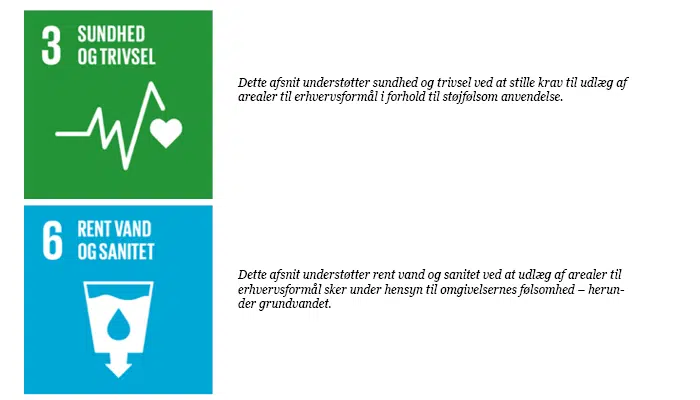 Ved udlæg af arealer til erhvervsformål skal der sikres en passende afstand til eksisterende og planlagt støjfølsom arealanvendelse, så virksomheder i erhvervsområdet kan overholde Miljøstyrelsens vejledende støjgrænser ved disse arealer.