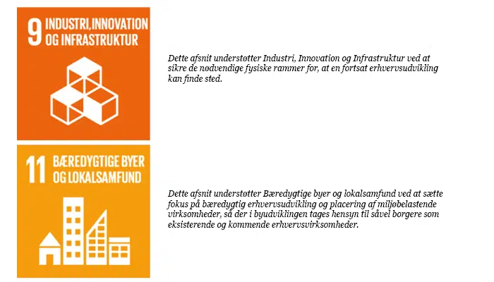 Dette sker bl.a. ved at have fokus på nye og større erhvervsområder placeret tæt på motorvejen. Udviklingen af disse områder skal ske med udgangspunkt i god infrastruktur, bæredygtighed, biodiversitet og indpasning i landskabet. Vi skal tilstræbe at undgå konflikter mellem benyttelse af erhvervsarealer og beskyttelses- og bevaringsinteresserne.